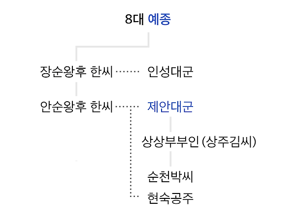 예종의 가계도는 조선 초기 왕실의 권력 구조와 정치적 동맹 관계를 이해하는 데 중요한 역사적 자료입니다.