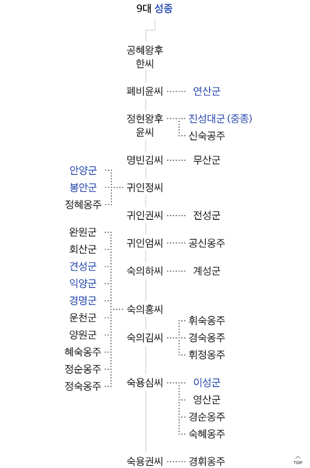 - 장남 : 연산군(燕山君, 조선 10대 왕).